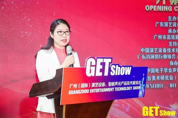 广东省文化和旅游厅副厅长赵红女士致辞,广东演艺设备行业是我省文化产业的重要板块之一,行业企业数量占全国的80%,为广东乃至全国的文化发展做出重要贡献。今年是“十四五”规划开局第一年,文旅产业正作为推动中国经济发展的重要引擎,演艺设备产业迎来新的历史发展机遇,此次展览组织周密、内容丰富,科技含量高,今天GETshow展会是全国文化+科技最优秀成果的集中展示,更是广东文化产业高质量发展的重要见证。