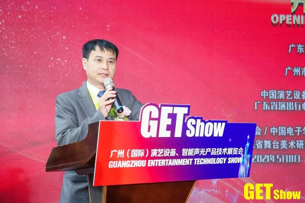 广东演艺设备行业商会会长王锐祥在致辞中表示,今年展会的举办来之不易,特别感谢政府部门的领导及全国各地专家、全体展商的大力支持,后疫情时代,GETshow将继续放大“会展”效应,除了传统展览展示之外,还紧跟产业融合发展新趋势,同期举办多场丰富的活动,希望通过GETshow为抓手,促进技术与艺术融合交流,加快行业升级发展。